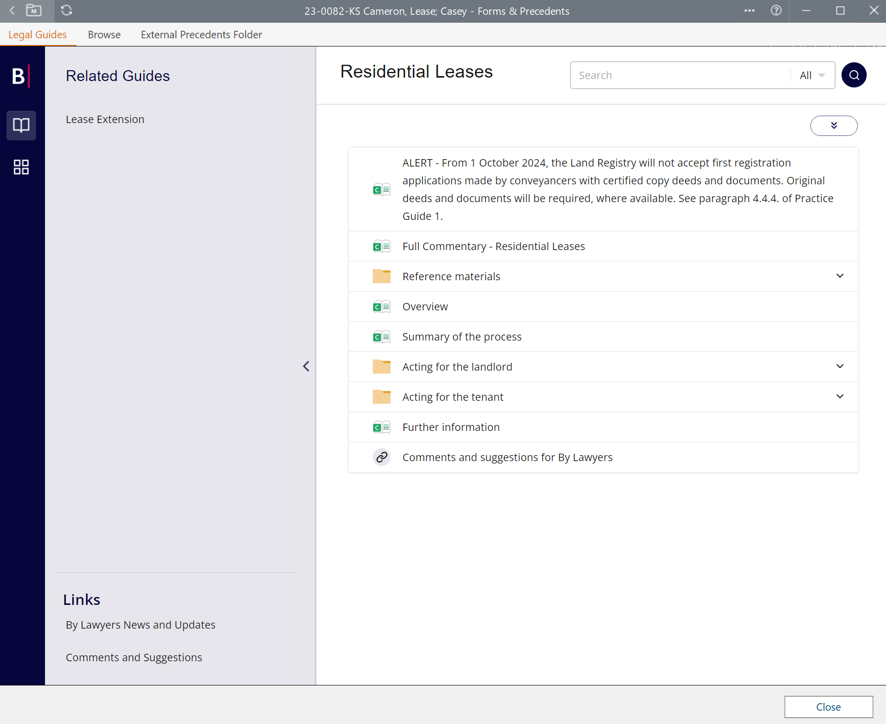 Knowledge BaseBy Lawyers - Using Guides and Precedents