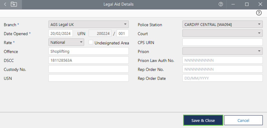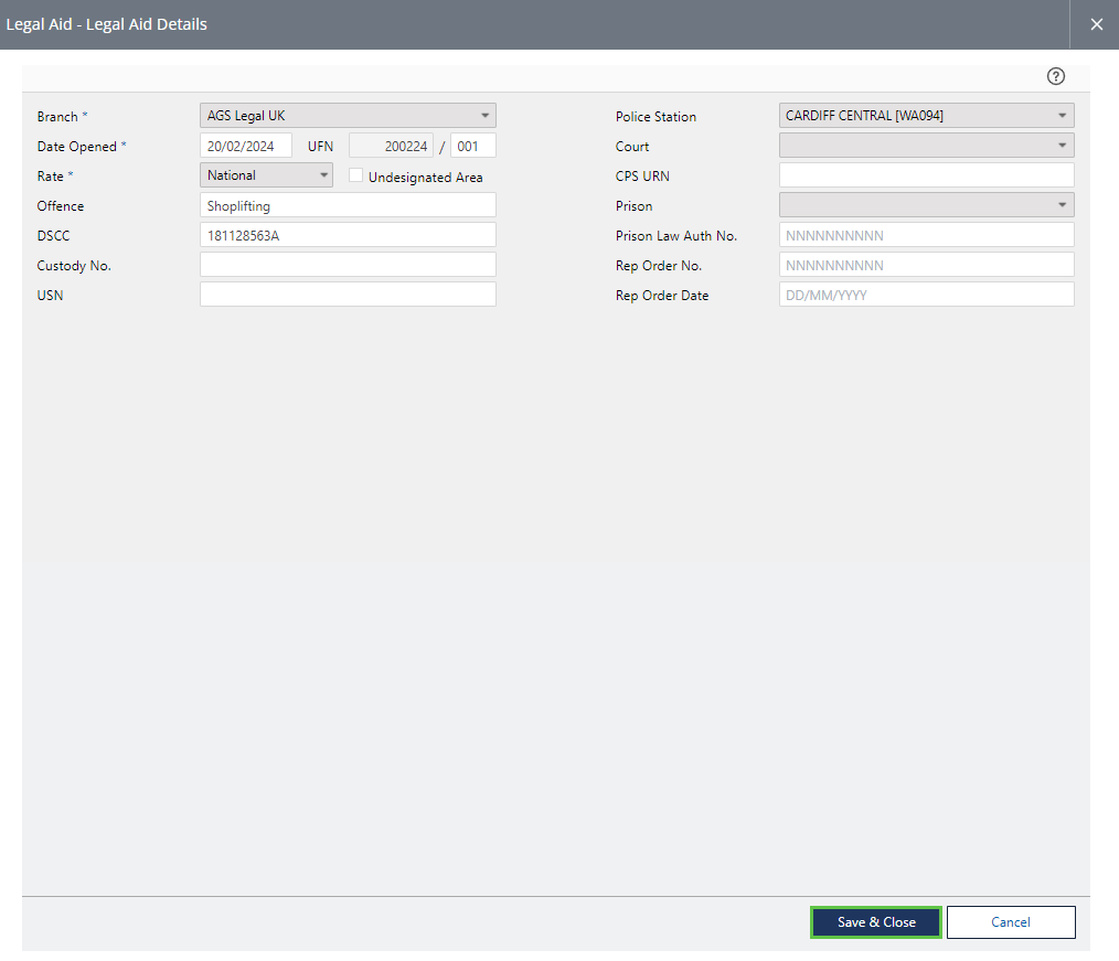 Creating a Criminal Legal Aid Matter