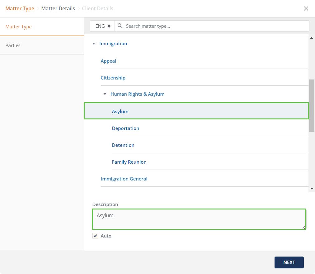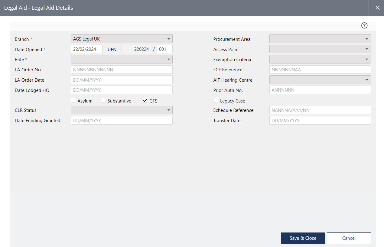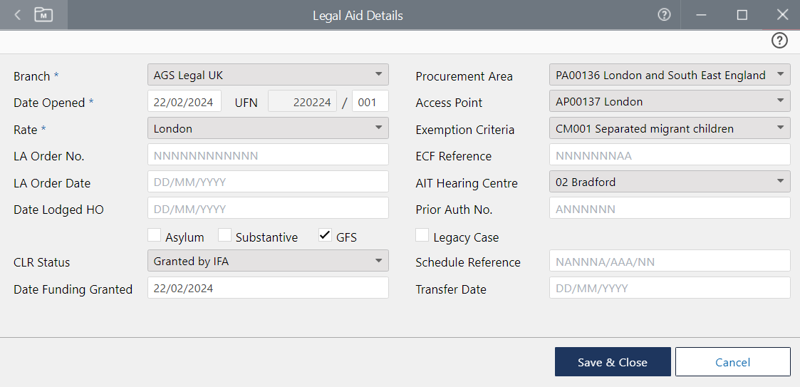 Legal Aid Civil - Immigration - Creating a New Legal Aid Matter