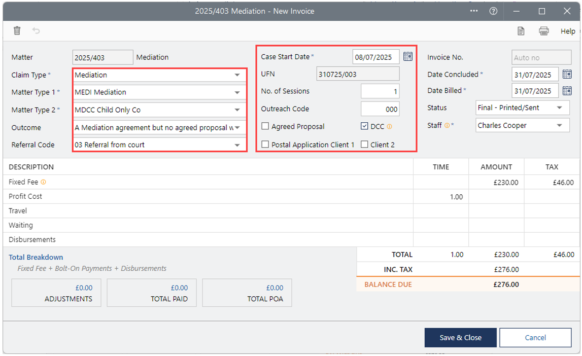 Knowledge BaseLegal Aid Civil - Mediation - Invoicing a Mediation Matter