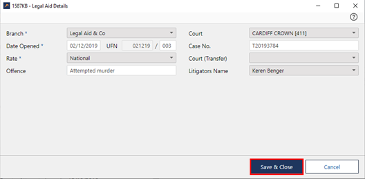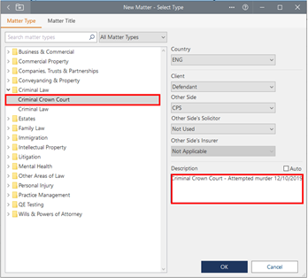 Legal Aid Criminal Crown Court - Creating a New Matter