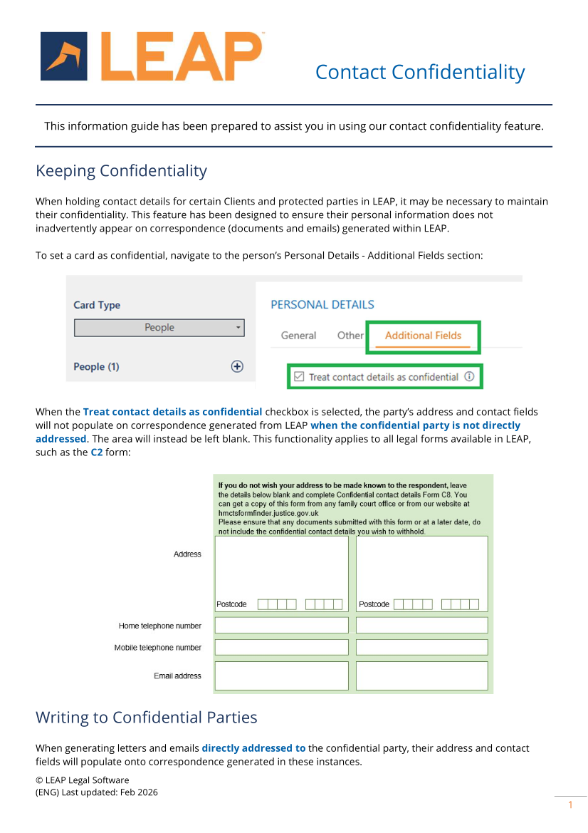 Knowledge BaseMatter and Form Information Guides - Practice Management
