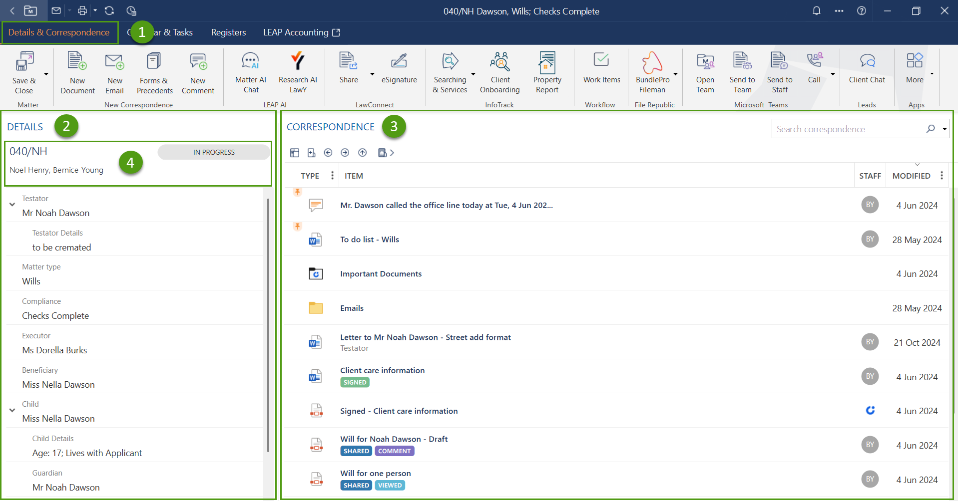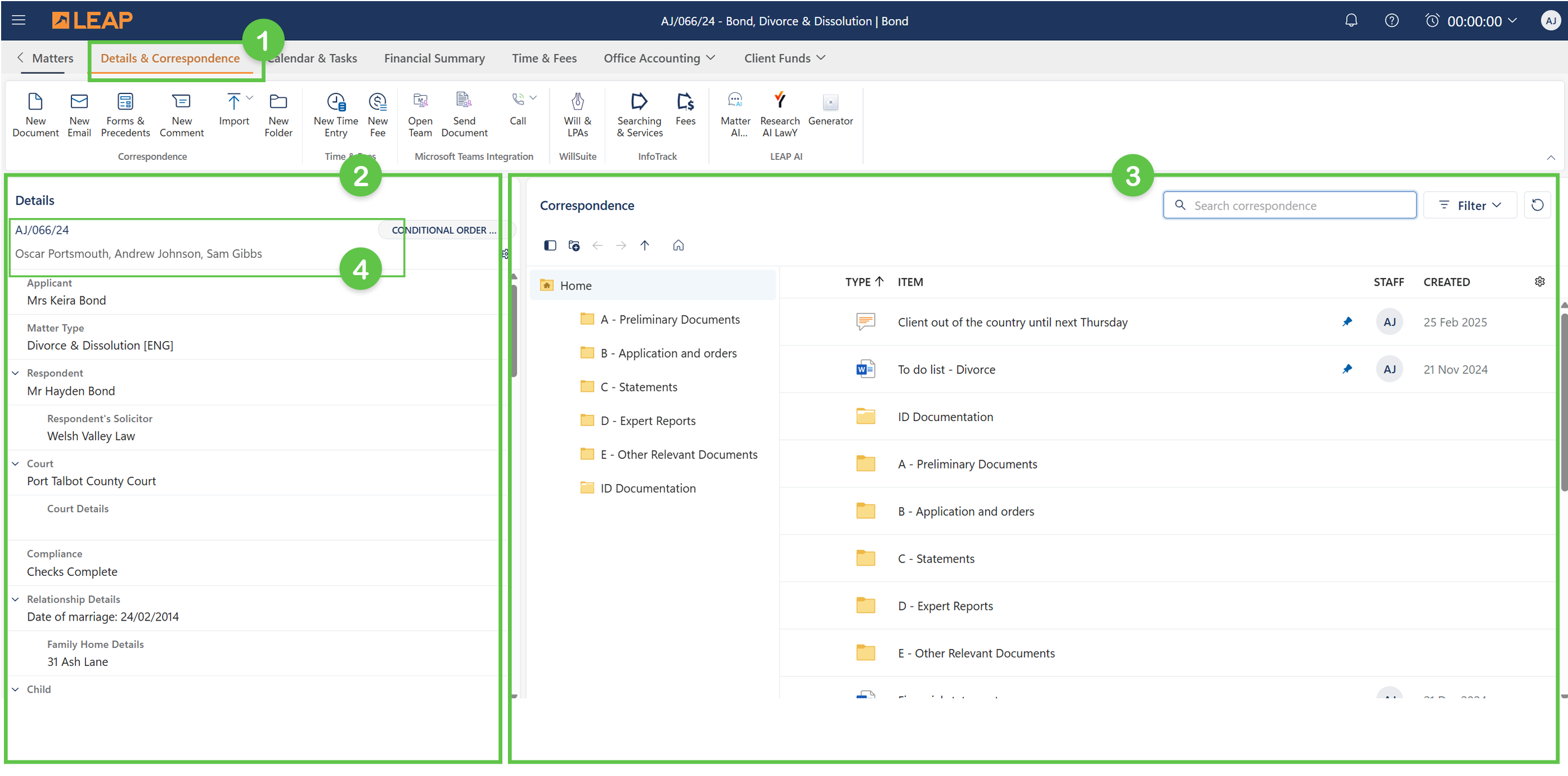 Matter Details and Correspondence