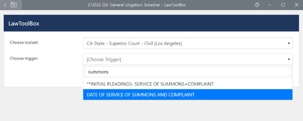 When you enter a “trigger date” like the date of trial the software instantly calculates deadlines based on the rules of civil procedure and other statutes (this concept is also described as: deadline calculators, calendaring rules and deadlines, court rules calendaring).