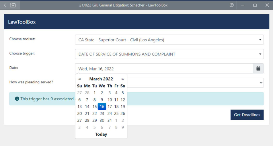 - Is the law firm staff manually calculating deadlines from a checklist?