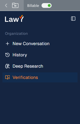 Furthermore, verification is not available on templates (e.g. affidavits or letters) or case summaries for a number of reasons. In the case of templates, this is because these materials often require a nuanced understanding of the specific facts—an area where only the practicing lawyer can make accurate assessments. For case summaries, when a URL is provided, LawY generates summaries based on the primary source itself, allowing you to dive deeper through the chat interface. When a single case is requested, LawY uses a previously verified source link to maximize accuracy from the outset.