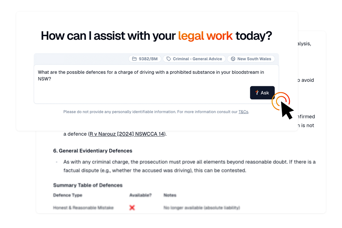 - Select Ask. This will enhance your research by extracting a list of substantive legal questions from your conversation, allowing for a deeper exploration of legal principles.