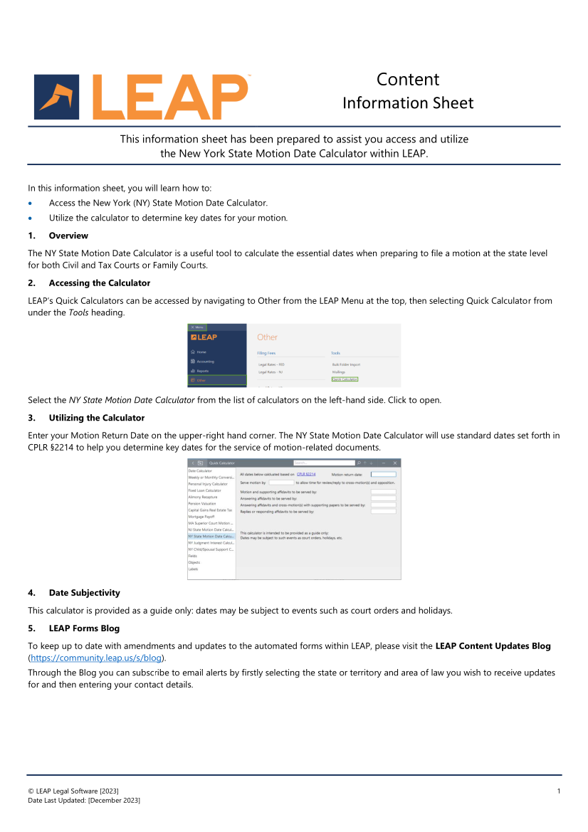 Knowledge BaseHow to Use the New York State Motion Date Quick Calculator