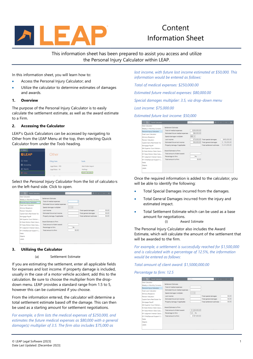 Knowledge BaseHow to Use the Personal Injury Calculator